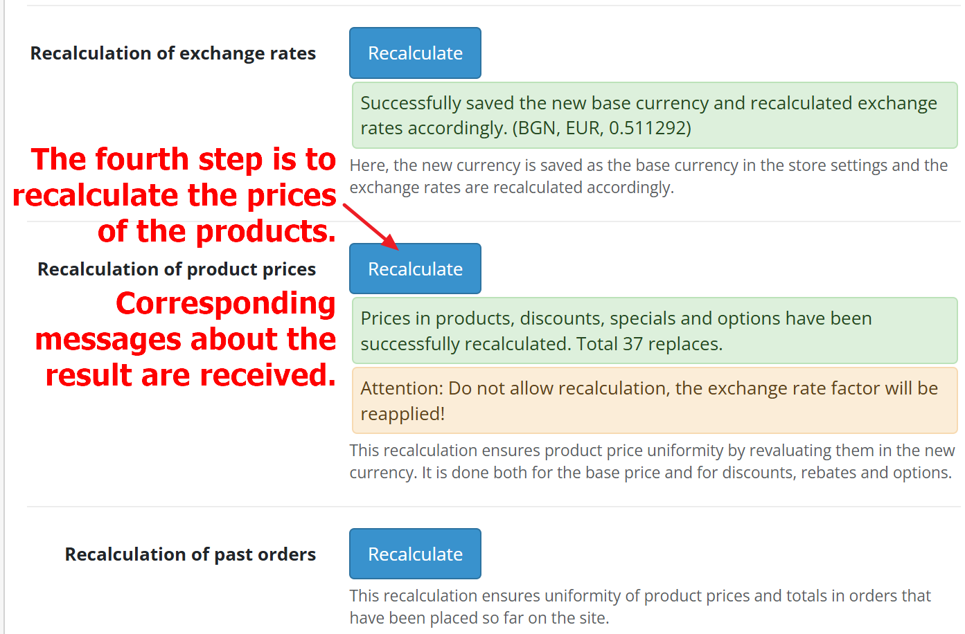 With this module, you can change the store's primary (default) currency, ensuring that the relevant exchange rates, product prices, and totals in past orders are recalculated.